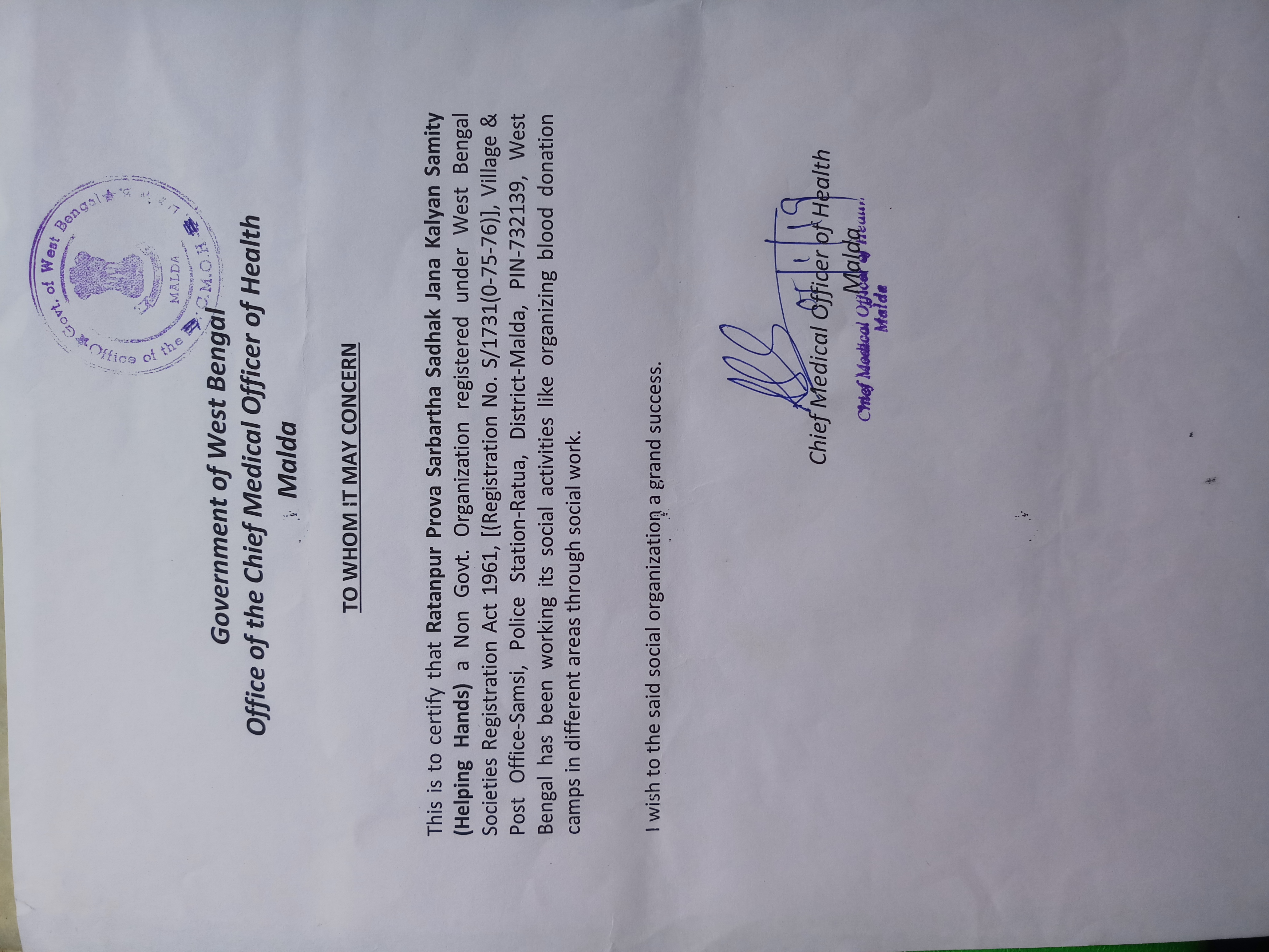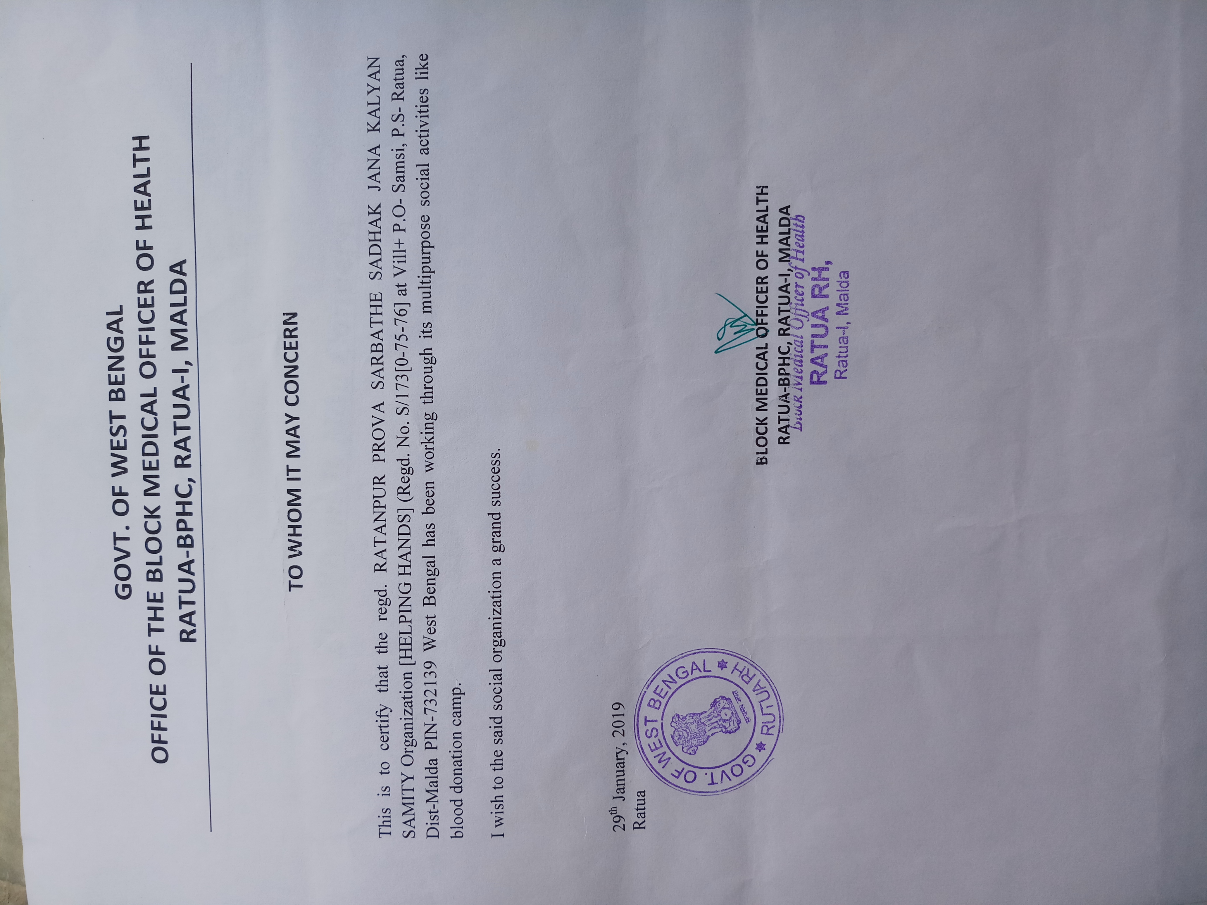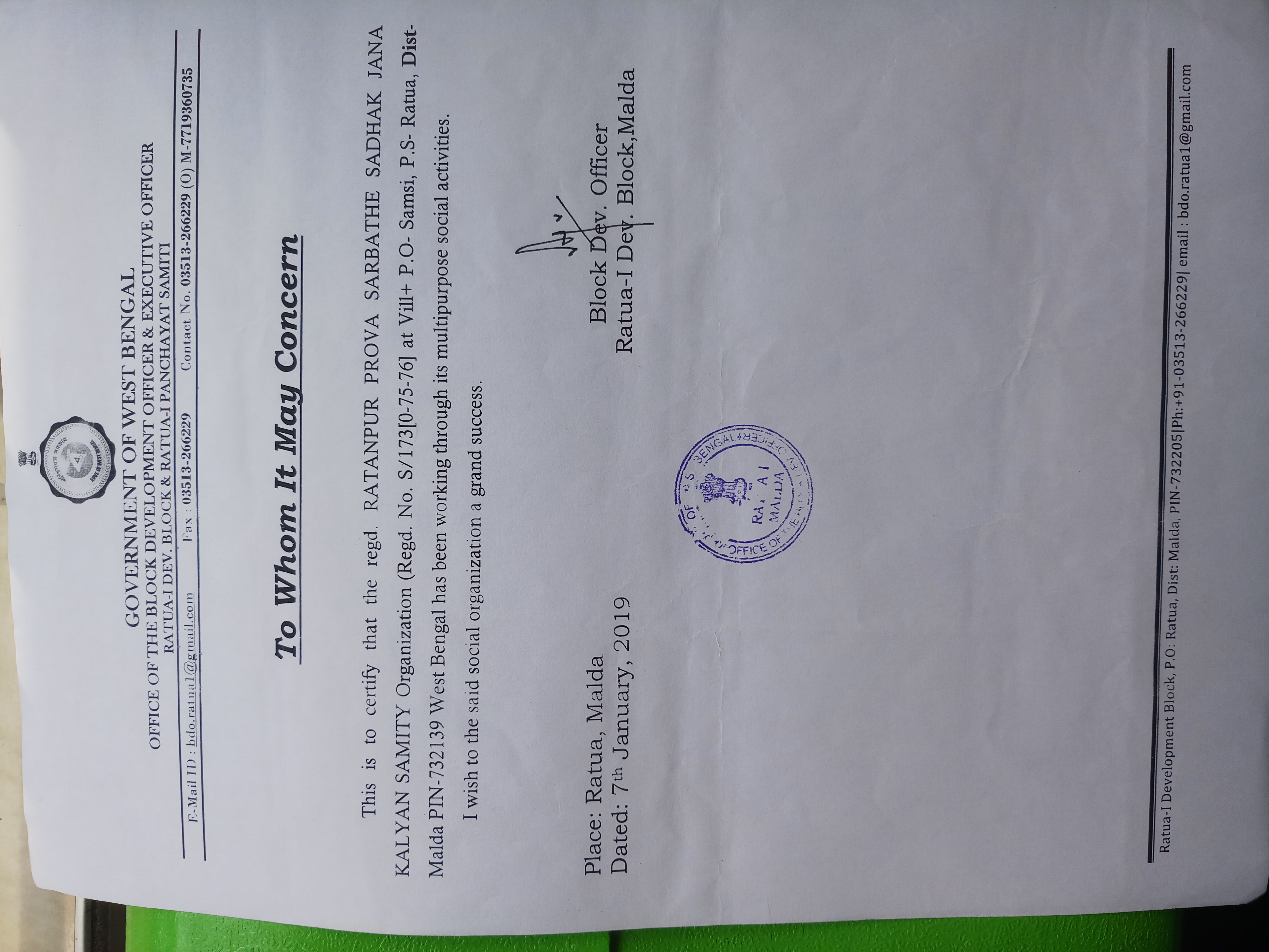 3 BLOCK DEVLOPMENT OFFICER OF THE GOVT WEST BENGAL ( RATUA) 2019-01-07 907746.jpg  Download We got appreciation letter from BDO RATUA for our outstanding work .